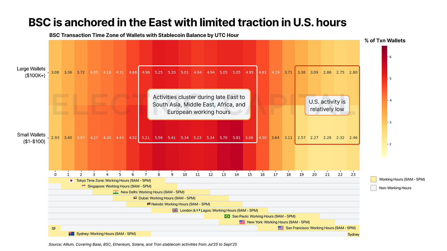 BSC is anchored in Eastern Hemisphere users, with limited traction in U.S. hours.